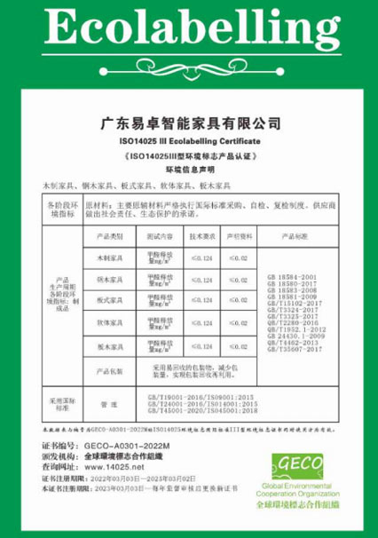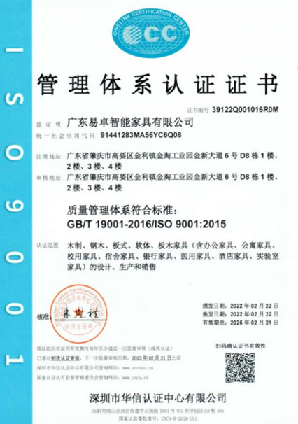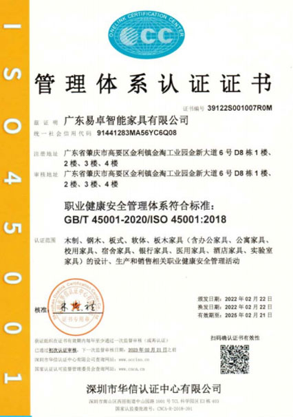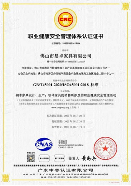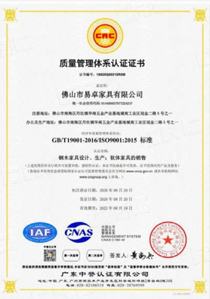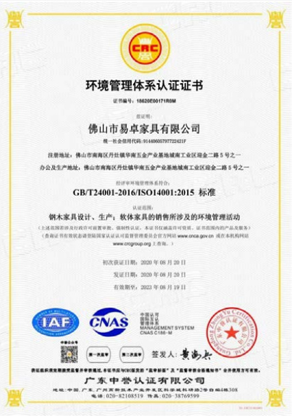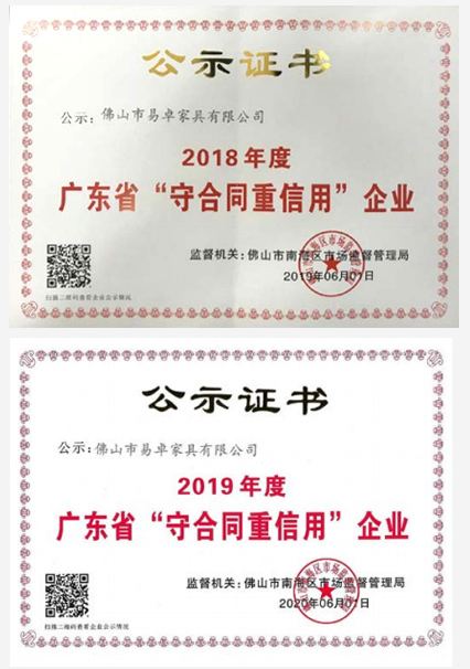 易卓人秉承“執(zhí)著、專注、創(chuàng)新、激情、高效、感恩”的企業(yè)精神,這里聚攏著一批真正熱愛家具的技術(shù)精尖的大工匠、設(shè)計(jì)師,抱著一種“做好一件事”的熱忱,不花力氣做廣告,只花力氣做產(chǎn)品,以利器為翼,創(chuàng)新為魂,憑借強(qiáng)大的技術(shù)實(shí)力及完善的管理體系獲得,在業(yè)內(nèi)先后通過了ISO9001質(zhì)量管理體系認(rèn)證、ISO14001環(huán)境管理體系認(rèn)證、ISO45001 職業(yè)健康安全管理體系認(rèn)證、知識(shí)產(chǎn)權(quán)管理認(rèn)證、環(huán)保產(chǎn)品認(rèn)證、中國(guó)環(huán)境標(biāo)志認(rèn)證及采用標(biāo)準(zhǔn)產(chǎn)品認(rèn)證等認(rèn)證;擁有發(fā)明、外觀、實(shí)用性等專利 36 項(xiàng),并于2017-2019年連續(xù)三年榮獲了“廣東省守合同重信用企業(yè)”稱號(hào)、于2019年獲得了“高新技術(shù)企業(yè)” 證書及“廣東省著名商標(biāo)”、“廣東省名牌產(chǎn)品”等榮譽(yù)稱號(hào)。